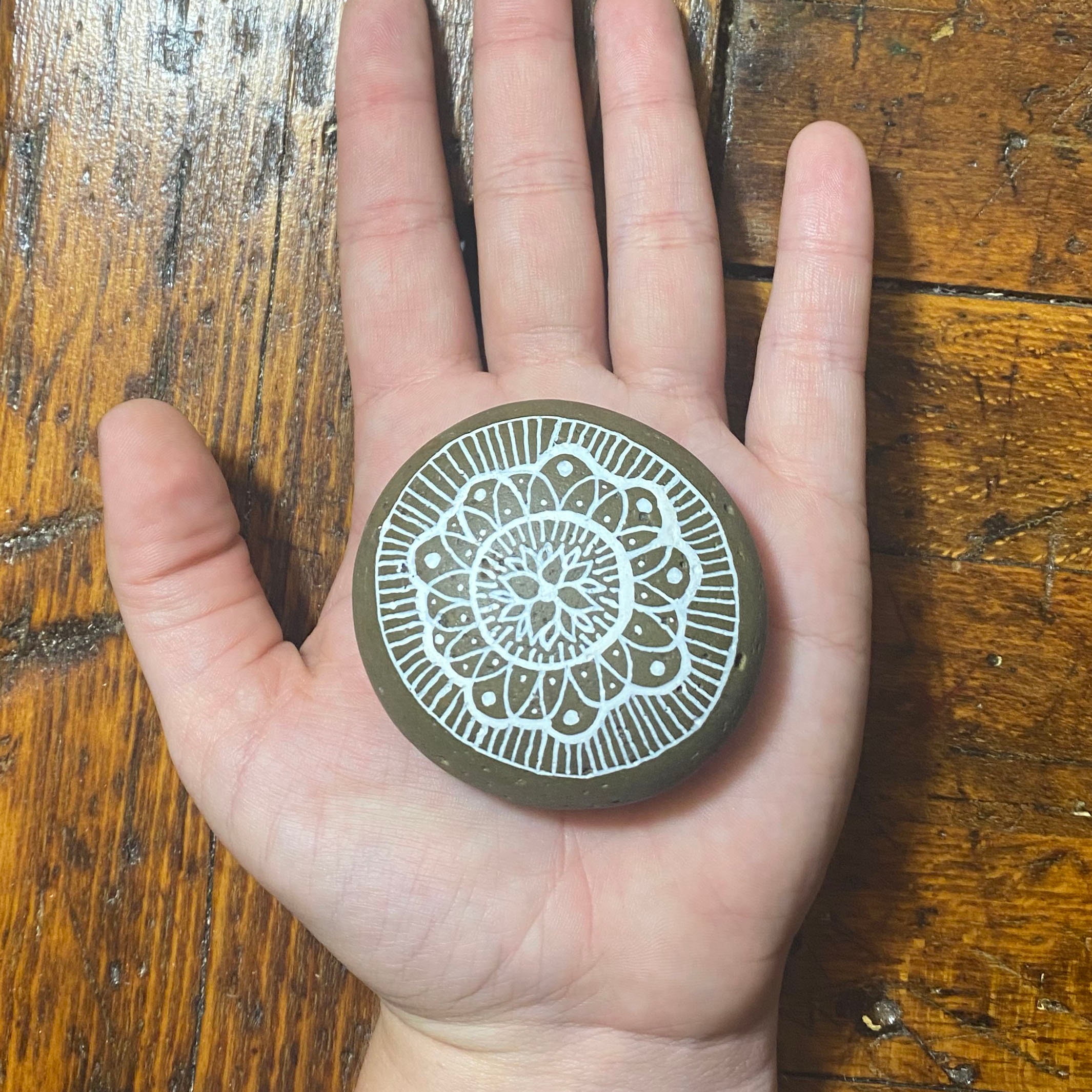 Hand Painted Stones - Big Mandala Stone - pebble, mandala art, hand painted, original home decor, meditation stone, Buddhist gift, painted pebble, decorative stones, pebble stone art, rock art, painted sea stone, office gifts, original home decor, meditation stones, Zen rocks, ornamental stone, Mehndi stone, henna mandala rock, gratitude stones